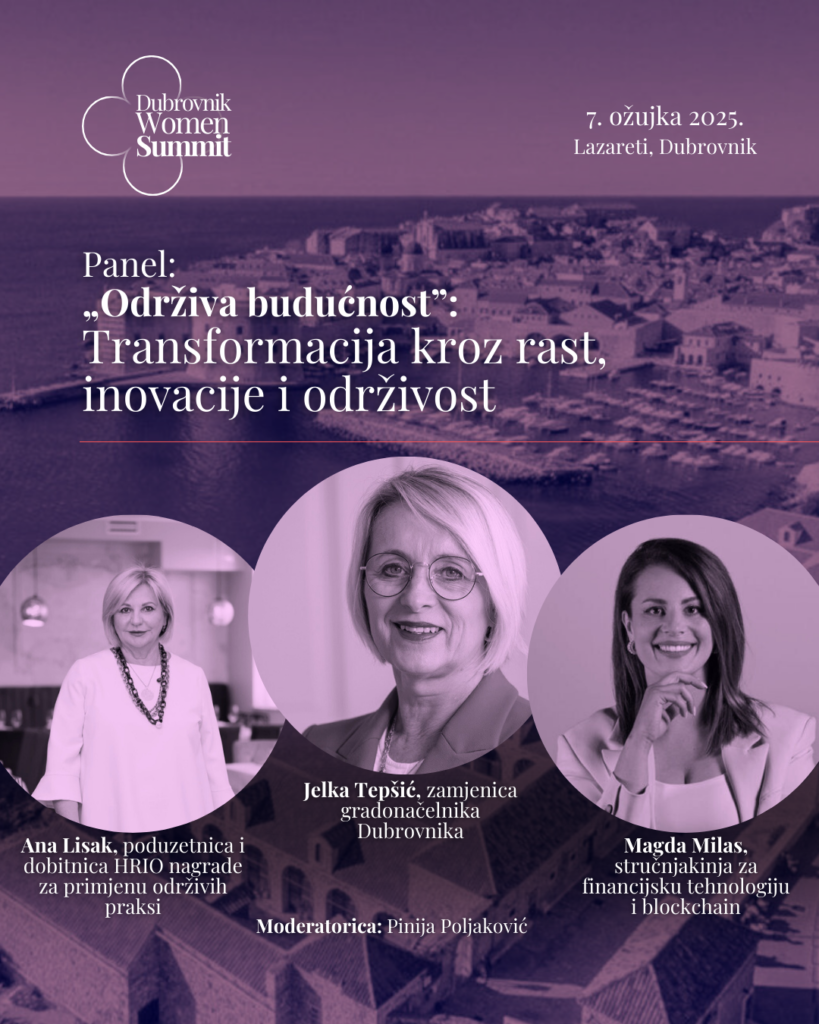 Na glavnom panelu summita sudjelovat će istaknute liderice iz različitih sektora, koje će kroz svoje iskustvo i znanje podijeliti uvide o održivosti i inovacijama. Jelka Tepšić, zamjenica gradonačelnika Dubrovnika govorit će o održivom turizmu, kako je Dubrovnik postao primjer upravljanja turizmom te kako inicijativa Respect the City balansira razvoj turizma i očuvanje lokalne zajednice. Magda Milas, stručnjakinja za financijsku tehnologiju i blockchain podijelit će uvide o ulozi blockchain tehnologije u turizmu, kako kriptovalute mogu smanjiti troškove u ugostiteljstvu te može li blockchain poboljšati transparentnost i praćenje održivih inicijativa u turizmu. Ana Lisak, poduzetnica i dobitnica nagrade HRIO za  primjenu održivih praksi govorit će o problemu bacanja hrane u ugostiteljstvu, kako mali restorani i hoteli mogu implementirati održive prakse i može li održivo poslovanje donijeti ekonomsku korist.